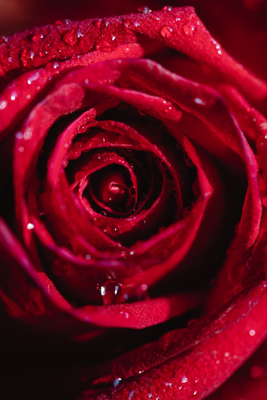 blooming red rose with pleasant aroma and dew